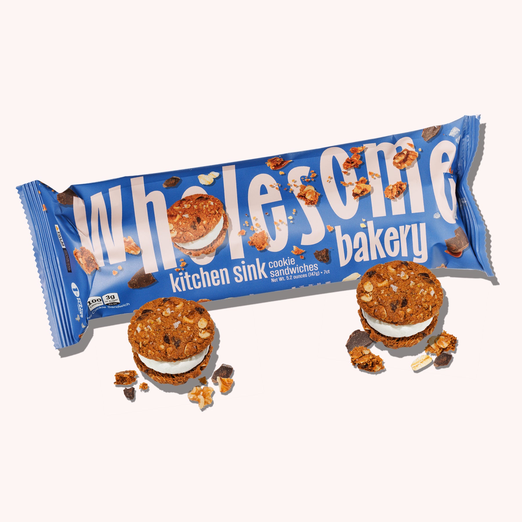 This cookie sandwich is a beautiful mess, like life but way tastier. It’s got 72% dark chocolate chips, housemade caramel so smooth it could charm your crush, walnuts for crunch, and rolled oats (because, hey, fiber’s important). Slap on some vanilla buttercream and sandwich the whole thing together and voila! - Chaotic perfection.