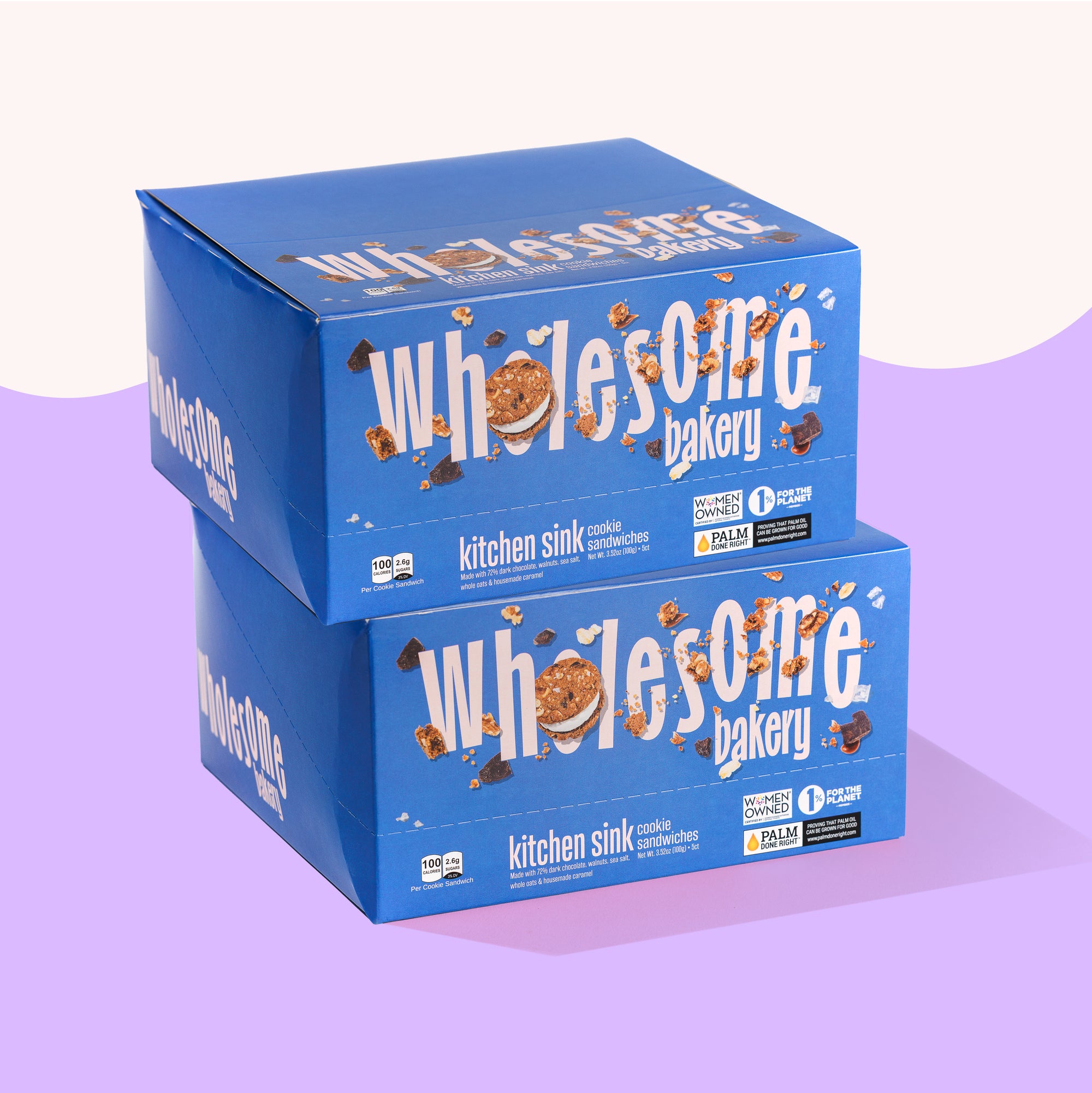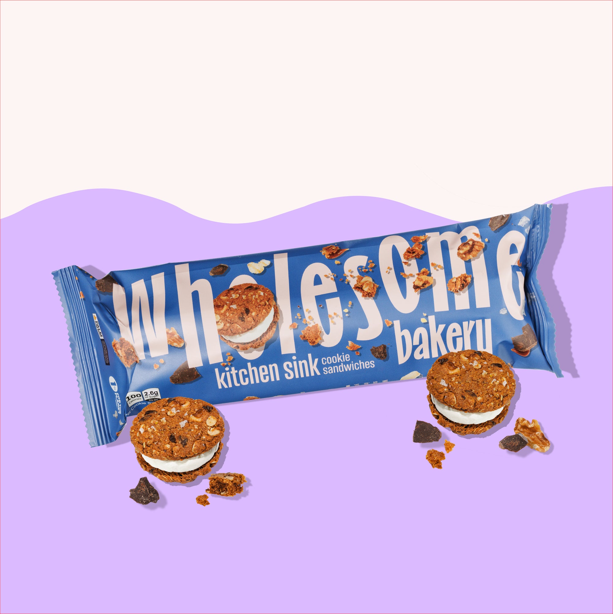 We threw everything but the kitchen sink at these babies. Rich vanilla butter cream sandwiched between our Kitchen Sandwich Cookies, made with 72% dark chocolate chunks, rolled oats, house made caramel, and crunchy walnuts.